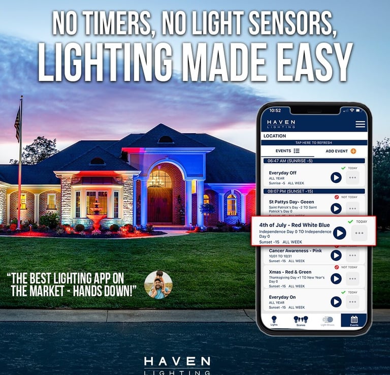 Pricing depends on the size of your property, the number of light fixtures, and your design preferences. We offer a FREE demo and estimate to help you choose the best solution that fits your style and budget.